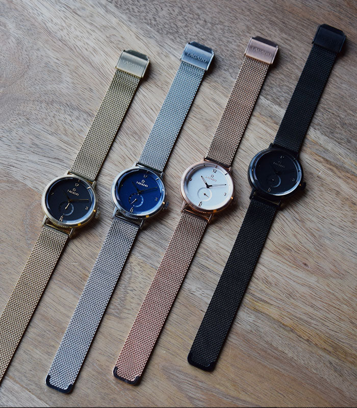 The watch size refers to the diameter of the dial, and it is usually measured in millimeters. Our watches come in three sizes to cater to different styles and tastes: Tempo 33mm, Tempo 41.5mm and Evolve 44mm.