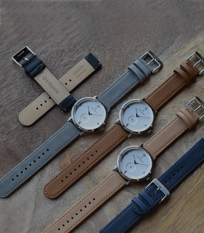 Explore our environmentally friendly and interchangeable, genuine Italian leather straps. Our leather straps are available in different textures and colors, and each strap has a protective inner lining and is equipped with an easy to use, quick release spring bar*.